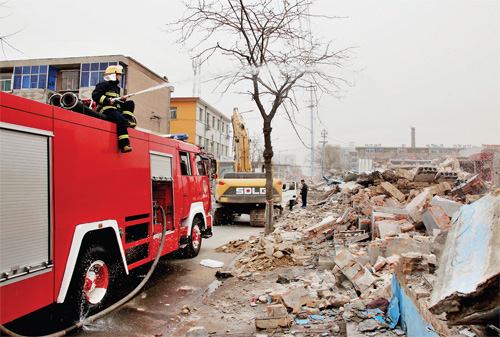 忻府區(qū)安排消防隊(duì)及時(shí)為拆遷工作降塵灑水