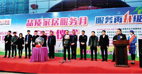 在“3·15”消費者權(quán)益日,忻州東方家園建材家具中心推出了“品質(zhì)家居服務月”活動。期間,東方家園與山西愛潔達貿(mào)易公司、忻州市惠民物業(yè)管理公司強強合作,為顧客提供免費上門服務。圖為“品質(zhì)家居服務月”啟動儀式。(李志強 攝)