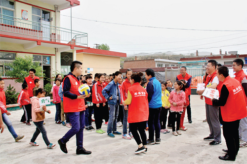 近日,太原市善林金融30 余名志愿者來到靜樂縣西會中心小學(xué),開展關(guān)愛留守兒童志愿服務(wù)活動(dòng),為孩子們送去了排球、羽毛球、跳繩、乒乓球臺等體育用品和設(shè)備,并與孩子們分享了中國女排頑強(qiáng)拼搏的故事,鼓勵(lì)孩子們自強(qiáng)不息、快樂成長。(劉盛甫 攝)