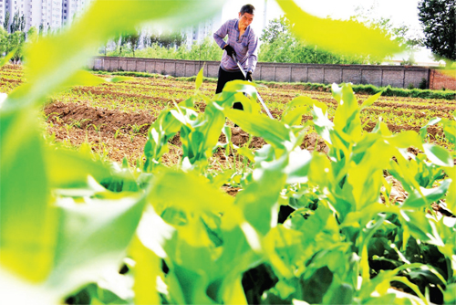 5 月17 日,原平市新原鄉(xiāng)農(nóng)民拿起鋤頭,正忙著進(jìn)行田間管理。農(nóng)歷小滿將至,氣溫升高,降雨量逐漸增多,大田農(nóng)作物生長加快,原平農(nóng)民在田間地頭又忙活開了,澆水灌溉,松土間苗,為今年糧食的豐收打下堅實(shí)基礎(chǔ)。(吉建平 攝)