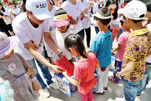 5 月30 日上午,共青團五臺縣委舉辦了“獻禮華誕、慈善同行”公益活動。泰康人壽山西分公司帶著對老區(qū)人民的深情厚誼,向該縣豆村鎮(zhèn)新莊小學捐贈助學金2 萬元、課桌椅150 套、書本文具1506 件、衣物601 件和健身設施1 套。圖為貧困學生在領取助學金。(王鐵虎 攝)