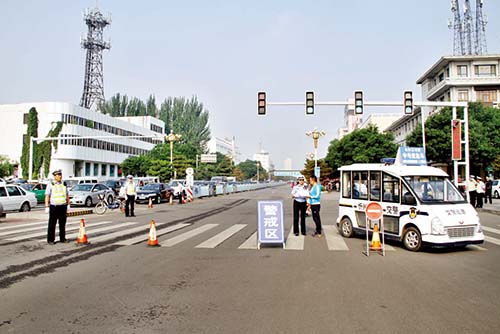 本報(bào)訊(記者 王國(guó)棟)我市2016年高中階段教育學(xué)校招生統(tǒng)一考試于6月20、21、22日如期進(jìn)行。我市公安交警為了切實(shí)做好中考期間全市道路交通安全保障工作,為考生營(yíng)造優(yōu)良交通環(huán)境,提供優(yōu)質(zhì)高效服務(wù),提前做好預(yù)案,部署警力,加強(qiáng)路面管控,在各考點(diǎn)的主要路段實(shí)施臨時(shí)交通管制,提高道路通行率,為廣大考生安全赴考創(chuàng)造良好的道路交通環(huán)境。