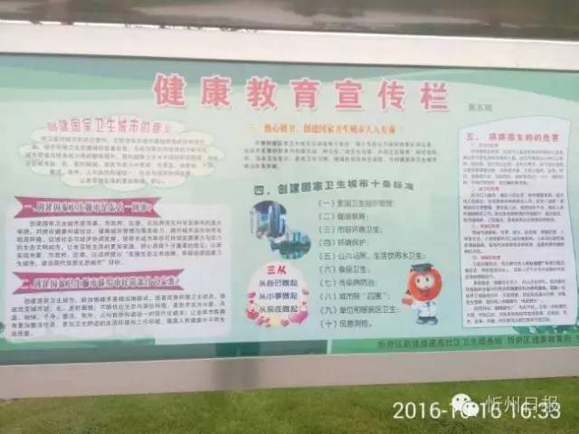 (四)為了突出創(chuàng)衛(wèi)這個(gè)詞語(yǔ),我選用了健康教育宣傳欄和正在進(jìn)行對(duì)這個(gè)城市面貌修飾的工人,還有我們學(xué)校附近的街心花園新修的一個(gè)花圃。(崔風(fēng)琴 攝)