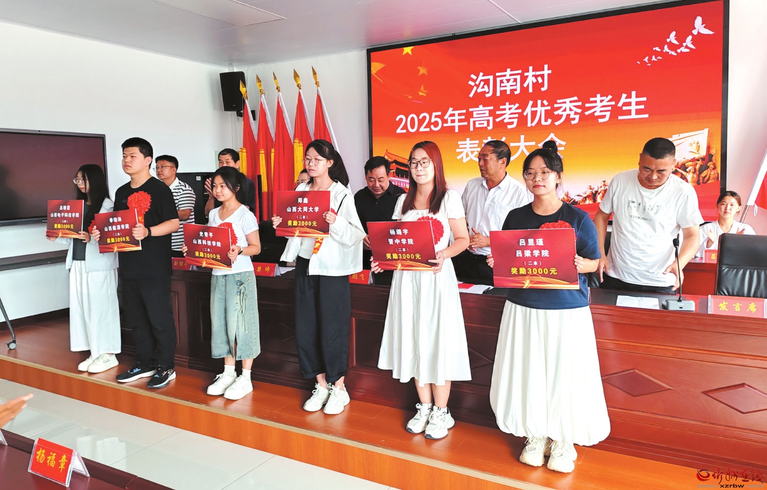8月26日,五臺縣溝南鄉(xiāng)溝南村舉行2025年度高考優(yōu)秀學(xué)生表彰獎勵大會,對本村高考成績優(yōu)異的學(xué)生予以表彰。作為省、市、縣三級文明村,溝南村歷來有尊師重教的優(yōu)良傳統(tǒng),近年來更是將鼓勵學(xué)生成才作為鄉(xiāng)村振興的重要抓手,每年定期對高考中取得優(yōu)秀成績的本村學(xué)生進(jìn)行表彰。截至目前,該村累計發(fā)放獎金超10萬元。(高峰毅攝)