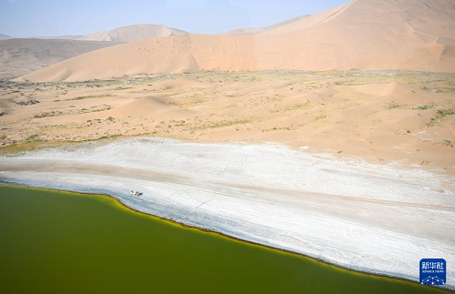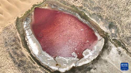 10月22日拍攝的巴丹吉林沙漠中的紅海子(無人機(jī)照片)。(新華社記者 貝赫 攝)