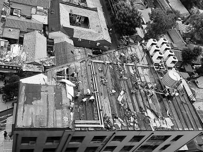 由于違建巨大,工人只能先從違建的頂層入手,將空調(diào)外機以及水泵等設(shè)施進(jìn)行拆除。“從目前的情況看,估計全部拆除完畢得近一個月的時間”,工作人員告訴記者,按照之前核算的拆違費用,預(yù)計全部拆完要50多萬元,目前這些費用只能由街道墊付,待強拆結(jié)束后依照相關(guān)的法律程序再依法追回。