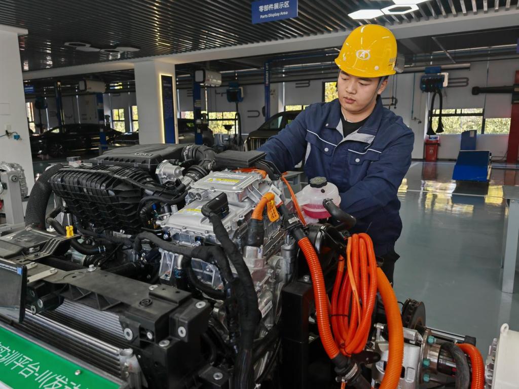 為支撐新能源汽車產(chǎn)業(yè)崛起,河南省全省高職院校開設(shè)相關(guān)專業(yè)點419個,相關(guān)在校生22.14萬人。在河南機電職業(yè)學(xué)院與比亞迪共建的現(xiàn)場工程師學(xué)院,圍繞“現(xiàn)場工程師”培養(yǎng)開發(fā)了37門項目化課程。該校每年向鄭州航空港區(qū)比亞迪工廠輸送1000余名技能人才,不少學(xué)生迅速成長為產(chǎn)線骨干?!皩W(xué)校通過‘項目+人才’雙交付育人模式,極大地增強了人才培養(yǎng)與企業(yè)需求的匹配度。”比亞迪總裝車間主任如是說。