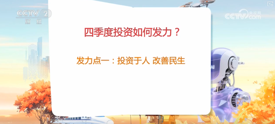 國家信息中心經(jīng)濟(jì)預(yù)測部產(chǎn)業(yè)經(jīng)濟(jì)研究室主任魏琪嘉介紹,四季度整個投資的重點(diǎn)領(lǐng)域,很多集中于民生項目建設(shè)方面,包括城市更新改造,地下管廊改造,包括停車場建設(shè)以及高標(biāo)準(zhǔn)農(nóng)田等,這些事關(guān)民生的一些重點(diǎn)的領(lǐng)域,實現(xiàn)這種投資于物與投資于人的這種高效協(xié)同,更多的投資于人。