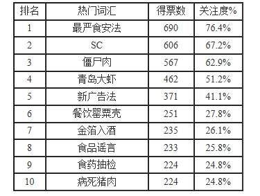 | 媒體調(diào)查食品行業(yè)十大熱詞:新食安法高居榜首 |
