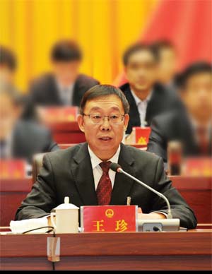 市人大常委會主任王珍主持閉幕大會并講話。本報記者 劉紀(jì)森 攝