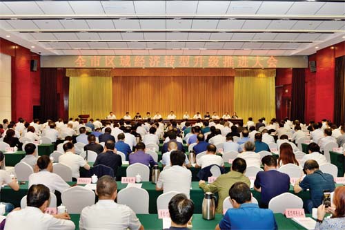 會議指出,要在六方面做好轉(zhuǎn)型升級工作。第一,在規(guī)劃與指導(dǎo)上,要把握高度,突出精度。必須清醒地把握轉(zhuǎn)型升級的大背景、大趨勢,全市上下要強化不轉(zhuǎn)沒出路、慢轉(zhuǎn)就落后的理念,必須準確把握轉(zhuǎn)型升級的新標準、新要求,始終堅持轉(zhuǎn)型為綱、產(chǎn)業(yè)為王、創(chuàng)新為上、改革為要,要做大優(yōu)勢,補齊短板。必須加強和改善黨對經(jīng)濟工作的領(lǐng)導(dǎo),將轉(zhuǎn)型升級內(nèi)容納入市委常委會1+3季度經(jīng)濟運行分析制度,做到底清數(shù)明、精準指導(dǎo)。第二,在產(chǎn)業(yè)和項目上,要突出轉(zhuǎn)型、推動轉(zhuǎn)型。核心要在六大主戰(zhàn)場主陣地,突出新動能培育、新技術(shù)應(yīng)用、新產(chǎn)品開發(fā)。要緊盯產(chǎn)業(yè)項目不放,緊盯相關(guān)指標不放,緊盯落后的縣(市、區(qū))和部門不放,大力推動支柱產(chǎn)業(yè)轉(zhuǎn)型升級,大力推動開發(fā)區(qū)轉(zhuǎn)型升級,大力推動民營經(jīng)濟轉(zhuǎn)型升級。要把功夫下在招商引資、招財引智和項目落地上。要落實責(zé)任制,將縣細化到干部和崗位。第三,在協(xié)調(diào)與環(huán)境上,要深化改革、擴大開放。要堅持以改革促轉(zhuǎn)型,堅持以開放促轉(zhuǎn)型,堅持以環(huán)保倒逼轉(zhuǎn)型,堅持以環(huán)境保障轉(zhuǎn)型。第四,在市場與人才上,要激活主體,突出創(chuàng)新。要以更大力度推進創(chuàng)新發(fā)展,補齊我市創(chuàng)新驅(qū)動短板,要發(fā)揮市場主導(dǎo)作用,強化企業(yè)主體地位和科技人才的主力作用,在新一輪的人才大戰(zhàn)中有所作為,引導(dǎo)創(chuàng)新要素向企業(yè)集聚。要全面深化企業(yè)改革,扎實推進國企改革和轉(zhuǎn)型升級。要為企業(yè)家放心干、放膽干、放手干撐腰做主,要發(fā)揮金融在區(qū)域經(jīng)濟轉(zhuǎn)型中的發(fā)動機、產(chǎn)業(yè)升級中的推進器作用,切實激發(fā)活力。第五,在責(zé)任與擔當上,要強化主責(zé),聚焦主業(yè)。要認真貫徹落實中辦印發(fā)的《關(guān)于進一步激勵廣大干部新時代新?lián)斝伦鳛榈囊庖姟?,全面落實?xí)近平總書記關(guān)于“三個區(qū)分開來”的重要要求,旗幟鮮明為敢于擔當?shù)母刹繐窝膭拧J锌h黨委、政府班子成員對轉(zhuǎn)型升級要做到指標到人、臺賬管理、動態(tài)調(diào)控、年底交賬,并作為領(lǐng)導(dǎo)班子和領(lǐng)導(dǎo)干部年度民主生活會對照檢查的重要內(nèi)容,作為干部選拔任用的重要依據(jù)。黨政部門的每一位班子成員,都要聯(lián)系一個產(chǎn)業(yè)園區(qū),抓好一個以上轉(zhuǎn)型升級示范項目。相關(guān)部門都要對標履職,量化到人,共同推動今年轉(zhuǎn)型升級考核指標應(yīng)統(tǒng)盡統(tǒng)、能升盡升、能增盡增、全力破零。第六,在考核與問責(zé)上,要分類實施,從嚴要求。在今年區(qū)域經(jīng)濟轉(zhuǎn)型升級考核中排后三位的要公開作出檢查。