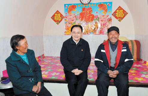 圖為省人大常委會(huì)副主任、市委書記李俊明在偏關(guān)縣新關(guān)鎮(zhèn)高家上石會(huì)村高長(zhǎng)后家了解增收脫貧情況。本報(bào)記者 宮愛文攝