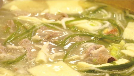 用料講究,特色配菜都要純手工制作。豆腐丸子、肉丸子、燒肉等食材經(jīng)烹飪后,盡顯治愈味道。熬制數(shù)小時(shí)的秘制高湯,搭配食客自選食材,經(jīng)鐵鍋燴制,呈現(xiàn)本真風(fēng)味。