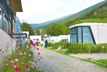 特色住宿業(yè)態(tài)則從高端到普惠多點(diǎn)開(kāi)花,滿足不同客群需求。獨(dú)具匠心的設(shè)計(jì)融入自然景觀,讓游客在青磚灰瓦間品茶論道,感受山風(fēng)的輕撫,體驗(yàn)“結(jié)廬在人境”的閑趣。其中,光明寺村“早種晚收”露營(yíng)基地可以說(shuō)是具有代表性的一處。在地方鎮(zhèn)政府和鄉(xiāng)村振興戰(zhàn)略的支持下,露營(yíng)基地依托東臺(tái)溝生態(tài)資源,建成28輛房車營(yíng)位并配套露天電影、自助燒烤區(qū),智能充電樁、星空觀景臺(tái)、生態(tài)衛(wèi)生間等現(xiàn)代化設(shè)施,年均接待游客超2萬(wàn)人次,成為社交平臺(tái)上的“網(wǎng)紅打卡地”,在戶外休閑旅游和特色住宿市場(chǎng)中建立了良好的聲譽(yù)和強(qiáng)大的競(jìng)爭(zhēng)力。