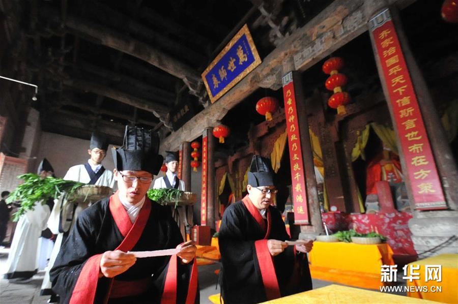5月7日,山西運城新絳縣在當?shù)厍旯懦墙{州的文廟首次舉行釋菜禮大典,以弘揚傳承尊師古文明,吸引了城鄉(xiāng)眾多群眾和中小學(xué)生冒雨觀典。新華社發(fā)(高新生 攝)