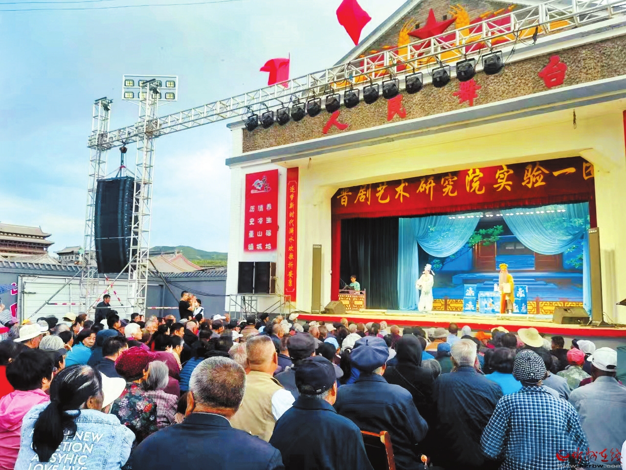 小時(shí)候在姥娘家里度過(guò),“看戲”,是村里最隆重的一件事。哪個(gè)村唱戲,十里八鄉(xiāng)的人都會(huì)來(lái)看戲。姥姥姥爺把看戲叫作“看唱”,村里唱戲,他們還會(huì)邀請(qǐng)親戚們來(lái)看戲,于是,看戲也為親戚間交流走動(dòng)提供了一次機(jī)會(huì)。這戲一般最少要連唱三天,日?qǐng)黾右箞?chǎng),有戲唱的日子里,臺(tái)上咚咚鏘鏘,咿咿呀呀,臺(tái)下人頭攢動(dòng),翹首觀望,戲場(chǎng)周?chē)鷦t滿是賣(mài)瓜子、糖果等零食和玩具的小攤小販,熱鬧非凡。有早早拿個(gè)凳子、馬扎或就地?fù)鞄讐K磚頭占了好位置舒舒服服坐了看戲的,也有站后邊佇足觀看的,孩子們則在人堆里鉆來(lái)鉆去,他們完全不關(guān)心是誰(shuí)在唱,唱的是啥,但唱戲的日子里,孩子們實(shí)在是比過(guò)年也要開(kāi)心。 一直認(rèn)為看戲是老人家的事,所以從來(lái)沒(méi)有認(rèn)真看過(guò)一場(chǎng)戲。村里的戲臺(tái)一般都是現(xiàn)搭的,有些鄉(xiāng)鎮(zhèn)也會(huì)有像樣的戲臺(tái),搭戲臺(tái)的場(chǎng)所或戲臺(tái)所在的地方,也往往是人們閑時(shí)聚集聊天說(shuō)地之處。某年,采訪一個(gè)村支書(shū)時(shí),他說(shuō)自己上任不久做的第一件大事就是給鄉(xiāng)親們“包了三場(chǎng)戲”,其時(shí),村里已經(jīng)好多年不唱戲了。這場(chǎng)戲唱了三天,附近村里的人都來(lái)看戲,大家像過(guò)年一樣興奮。一場(chǎng)戲,瞬間拉進(jìn)了他和鄉(xiāng)親們的距離。他說(shuō),這場(chǎng)戲很長(zhǎng)時(shí)間都為群眾所津津樂(lè)道,而他接下來(lái)的工作都順風(fēng)順?biāo)?,就是個(gè)別所謂“難纏的人”,也能做到不拖后腿,“說(shuō)甚應(yīng)甚”。 縣城的大戲臺(tái)是全縣建得最早、也最高大宏偉的戲臺(tái)了。戲臺(tái)位于鼓樓街東側(cè),戲臺(tái)前寬敞的空地上有籃球架等體育器材,每天都有不少人在這里打球、運(yùn)動(dòng),所以大家也習(xí)慣性地把這里叫作“大操場(chǎng)”。舞臺(tái)前額上書(shū)“人民舞臺(tái)”四個(gè)正紅色大字,尖頂起脊,頂部正面三角形正中是一顆浮雕紅色五角星,五角星兩邊是浮雕金黃的麥穗,飄揚(yáng)的旗幟,體現(xiàn)了人民舞臺(tái)為人民的設(shè)計(jì)意圖。舞臺(tái)兩側(cè)原是磚砌底面滾白,現(xiàn)在是紅底的岢嵐宣傳語(yǔ),一邊是“歷史重鎮(zhèn)、清涼山城、養(yǎng)生福地”,一邊是“青山綠水、文明宜居、人和業(yè)興”。大操場(chǎng)對(duì)面原來(lái)是東街小學(xué),現(xiàn)在是在原址上改建的岢嵐四中,四中沒(méi)有操場(chǎng)之前,大操場(chǎng)還是學(xué)校上體育課、組織體育活動(dòng)的主要場(chǎng)所。問(wèn)家里四零后的幾位老人,誰(shuí)也說(shuō)不上戲臺(tái)是哪年建的,只說(shuō)“可早就有了,我們上初中那會(huì)兒肯定是有了?!?/p> 可以說(shuō),岢嵐人沒(méi)有不知道大操場(chǎng)的,沒(méi)有沒(méi)來(lái)過(guò)大戲臺(tái)的,說(shuō)大戲臺(tái)是岢嵐的文化地標(biāo)一點(diǎn)也不為過(guò)。 大戲臺(tái)前最紅火的時(shí)候便是每年的元宵節(jié)、端午節(jié)了。每逢這兩個(gè)節(jié)日,縣里都會(huì)“趕會(huì)”,元宵節(jié)有各鄉(xiāng)鎮(zhèn)、單位組織的文藝表演,端午節(jié)是全年規(guī)模最盛大的物資交流大會(huì),端午節(jié)“趕會(huì)”期間,大人們買(mǎi)各種超級(jí)便宜的生活用品,觀看各類(lèi)表演,孩子們流連于跳跳床、碰碰車(chē)等各種游樂(lè)設(shè)施,所有人都像此時(shí)地里正在瘋長(zhǎng)的玉米高粱一樣,對(duì)任何一點(diǎn)響動(dòng)都要欣欣然眊一眼。所有的項(xiàng)目中,大戲臺(tái)前看大戲永遠(yuǎn)是最核心的文化活動(dòng),戲臺(tái)上的響動(dòng)卻是整個(gè)端午節(jié)的氛圍擔(dān)當(dāng),盡管戲臺(tái)前的觀眾總是白發(fā)人居多。老戲迷在戲場(chǎng)見(jiàn)到熟人,開(kāi)演前大家總要先聊個(gè)天。 以往在戲臺(tái)前,我都只是稍微感受一下氛圍,從來(lái)沒(méi)有認(rèn)真看過(guò)一場(chǎng)戲,小時(shí)候印象里最深刻的一個(gè)場(chǎng)景就是秦香蓮一身素衣帶著兩個(gè)孩子邊哭邊唱的樣子,長(zhǎng)大后才知道她何以哭訴。 母親愛(ài)看戲,以前都是她自己去,今年的端午節(jié),我陪她從頭到尾看了兩場(chǎng)戲。為了讓我們看得舒服點(diǎn),我也特意帶了小椅子,提前半個(gè)小時(shí)就到了戲場(chǎng)。以為早去了干等著肯定會(huì)無(wú)聊,結(jié)果母親一去了就見(jiàn)到了熟人,于是一一給我介紹,這是誰(shuí)誰(shuí)姨姨,那是誰(shuí)誰(shuí)老師,有的是當(dāng)年一起在某某學(xué)校教過(guò)書(shū)的,有的是她在某某村教過(guò)的學(xué)生,有的是老鄰居,母親和他們有的幾年不見(jiàn)面了,有的甚至是隔了十幾年、幾十年。這些叔叔阿姨們大多不同程度耳聾,他們的聊天基本是喊著說(shuō)話,但是家庭情況,身體狀況,兒女、孫子、外甥,柴米油鹽,都是對(duì)方關(guān)注的或自己想分享的、傾訴的。置身這種熱烈的聊天場(chǎng)面,短時(shí)間內(nèi)感受不同年代、不同人的一生,實(shí)在是一種奇妙的體驗(yàn)。也有遠(yuǎn)遠(yuǎn)的夠不著的,大家就招招手互相問(wèn)候一下。每個(gè)老年人的身邊,基本上都有一個(gè)中年兒女陪著,也有兒女有事不能陪著看戲