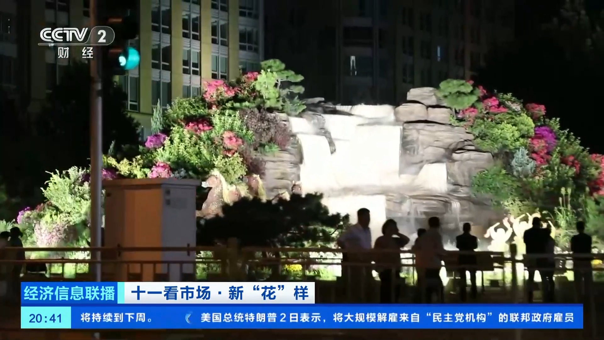總臺央視記者 王聞聰:今年北京天安門廣場中心花壇的大花籃和長安街沿線的10組立體花壇,都在國慶中秋假期增添了夜間照明設(shè)施,讓夜晚的花壇更加引人注目。北京東單東南角的“黃河贊歌”立體花壇,也被稱為是“會唱歌的花壇”。在花壇上不僅能看到微觀的壺口瀑布、奔騰的駿馬、載歌載舞的人群,還有水霧、音樂等聲光電技術(shù),更加逼真地還原了黃河之水天上來的氣勢。晚上八點,這里仍有大量游客前來拍照打卡。