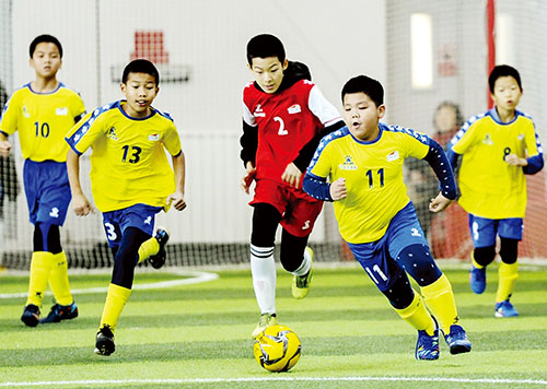 11月18日,2018年新疆維吾爾自治區(qū)首屆體育產(chǎn)業(yè)杯青少年足球聯(lián)賽在新疆國(guó)際會(huì)展中心圣丹亞體育運(yùn)動(dòng)球場(chǎng)鳴哨開賽。此次足球聯(lián)賽邀請(qǐng)了來(lái)自烏魯木齊市、新疆昌吉回族自治州部分中小學(xué)及俱樂(lè)部共14支代表隊(duì)參加。圖為新疆農(nóng)大附中代表隊(duì)球員(前)與昌吉足協(xié)代表隊(duì)球員在U12比賽中。據(jù)新華社 記者 王菲 攝 (責(zé)任編輯:李冬梅) |