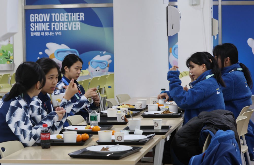 1月18日,中國運動員在冬青奧村內(nèi)就餐。新華社記者 姚琪琳 攝