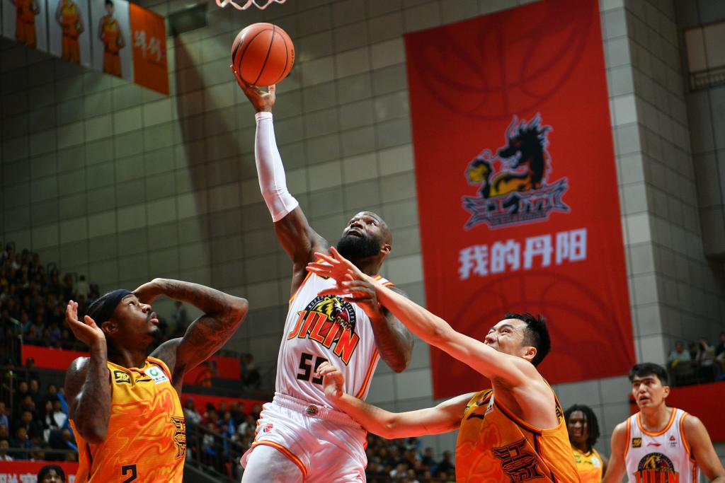 10月20日,吉林隊球員瓊斯(上)在比賽中投籃。新華社發(fā)(史康攝)