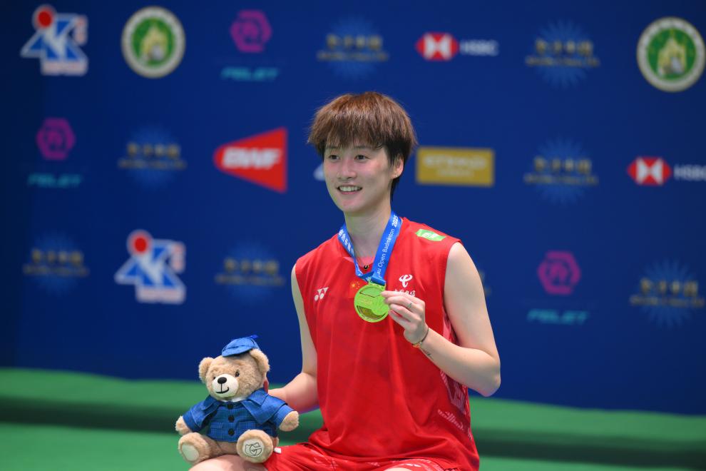 8月3日,冠軍陳雨菲在頒獎(jiǎng)儀式上。新華社發(fā)(張金加攝)