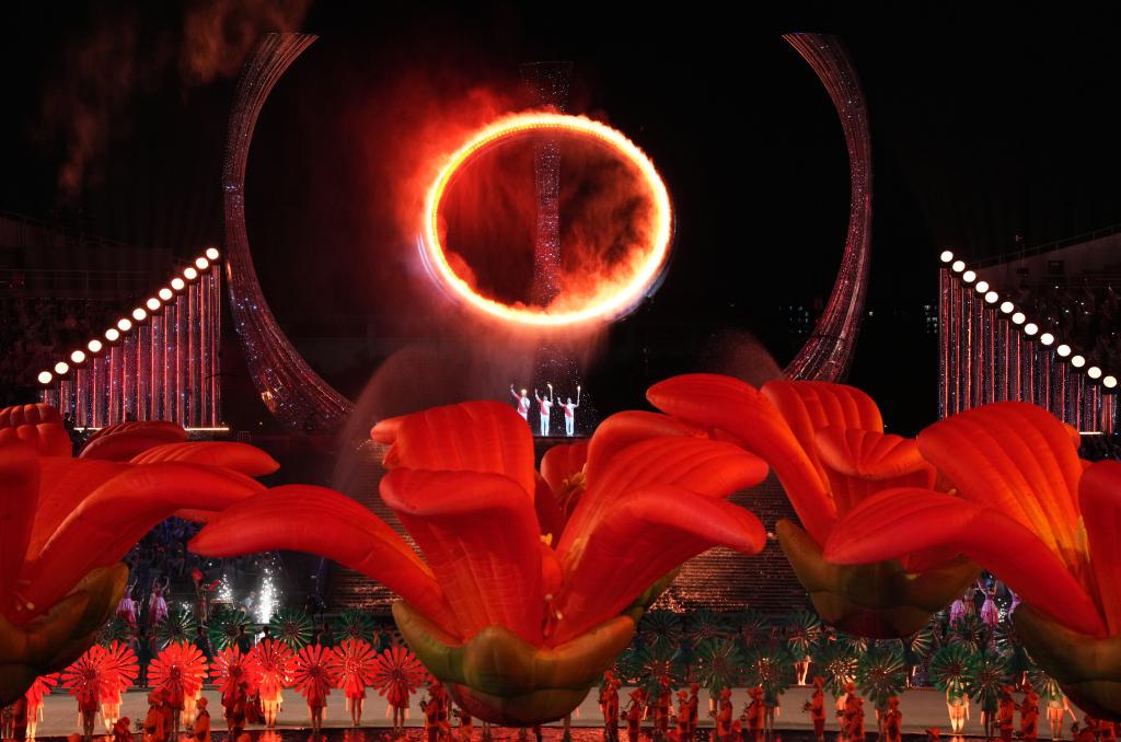 新華社廣州11月10日電(記者王浩明、趙紫羽、田宇)9日晚,廣東奧林匹克體育中心,十五運(yùn)會(huì)的開幕式在這里舉行,當(dāng)十五運(yùn)會(huì)主火炬塔“天海之冠”被三地健兒共同點(diǎn)亮那一剎,燈火輝煌,掌聲雷動(dòng)。 燈光忽地變暗,一滴水落在水面的聲音入耳,緊接著一段柔美的前奏,隨后是清澈如水的歌聲:“一滴水,一滴一滴一滴一滴的水,是咸的,那是感動(dòng)的眼淚……”