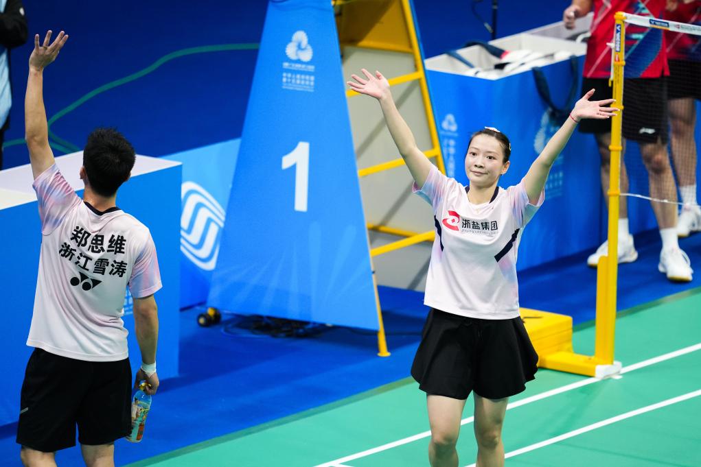 有的告別帶著些許遺憾,有的則收獲圓滿。在羽毛球館里,當(dāng)混雙決賽最后一球落地時,鄭思維只是高舉雙臂,黃雅瓊則輕輕揮了揮手。浙江隊的“雅思”組合2:0完勝湖南隊的周志宏/魏雅欣,用一枚全運(yùn)會金牌為自己的傳奇畫下句點(diǎn)。