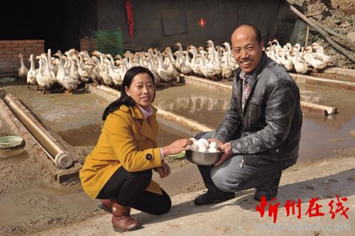 飼養(yǎng)蛋鵝農(nóng)民收獲鵝蛋時(shí)的激動(dòng)