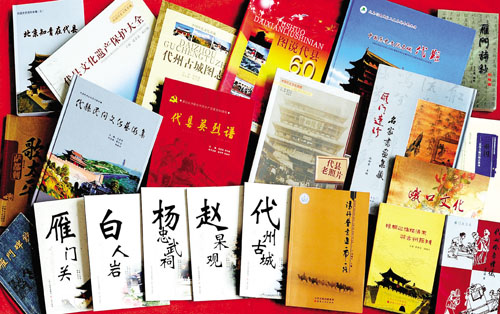 由程培甫、馮祥主編的《雁門碑抄》收錄了唐代以來鐫刻在代縣各地的古碑碑文98篇,詔、敕、封誥19篇,從不同的側(cè)面反映和記錄了代縣悠久的歷史和博大的文化內(nèi)涵,是挖掘、整理、弘揚(yáng)雁門文化極其珍貴的歷史資料。由王文藻主編的《雁門詩抄》,分“人物篇”和“形勝篇”兩本。“人物篇”匯集了有詩詠代的代州人,或在代地作過官,或因事涉足過代地的83位歷史人物和詠贊他們的230首詩詞,意在讓今人了解古人的業(yè)績政聲,學(xué)習(xí)古人的品格情操?!靶蝿倨眲t收集了歷代仕宦、詩人、騷客、雅士游覽代州時(shí)寫下的300多首詠贊代州壯美山河、名樓勝跡的古代詩詞,意在讓今人更好地挖掘、了解、弘揚(yáng)博大精深的雁門文化,推動(dòng)代縣旅游事業(yè)的發(fā)展,促進(jìn)縣域經(jīng)濟(jì)的振興。2008年由山西人民出版社出版的《代縣老照片》,收集了代縣從清朝末年到上世紀(jì)50年代拍攝的360多幅珍貴的歷史照片,分為古城遺跡、雁門雄關(guān)、教育篇章、代商風(fēng)采、社會(huì)百態(tài)、名人佚事、革命史詩等七個(gè)篇章,結(jié)為一集。翻閱這些泛黃的老照片,讀者可以欣賞文化名城宏偉壯觀的古老建筑,瞻仰歷史名人的風(fēng)姿俊采,領(lǐng)略代州驕子的雄才大略,感受有識(shí)之士的宏圖大志,體會(huì)莘莘學(xué)子的凌云壯志……透過這些老照片,我們既能追尋歷史,更可展望未來。2009年出版的《圖說代縣60年》,以編年體的形式,按照時(shí)間順序,選取每年在代縣大地上發(fā)生的重大事件、重要人物,或是能真實(shí)反映當(dāng)時(shí)當(dāng)?shù)鼐哂袝r(shí)代特色、風(fēng)土人情的歷史照片780多幅,配以簡明扼要的文字說明,形象生動(dòng)地再現(xiàn)了新中國成立60年來代縣發(fā)展變化的歷史進(jìn)程,是新中國60年發(fā)展變化的一個(gè)縮影。它所包含的信息和所起到的作用會(huì)超越時(shí)空,成為后人認(rèn)識(shí)歷史演變的生動(dòng)教材。同年出版的《代縣古城圖志》則以圖文并茂的形式,向讀者介紹了代州古城的歷史沿革、代州古城的城垣、街衢、商貿(mào)、衙廨、教育、寺廟、風(fēng)俗風(fēng)物、歷史人物等內(nèi)容,展示了古代州悠久的歷史和深厚的文化底蘊(yùn),為人們提供了一個(gè)了解代州古城的窗口。