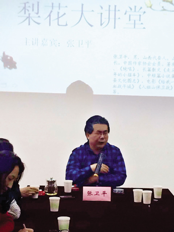 農(nóng)家出身的張衛(wèi)平來自代縣基層,現(xiàn)為中國作家協(xié)會會員,著有長篇小說《給我一支槍》、《絕唱》,長篇散文《走馬雁門》,短篇小說集《童年的小搖車》、中短篇小說集《野魂》,電影《給我一支槍》、《浴血雁門關(guān)》、《血戰(zhàn)午城》、《人祖山保衛(wèi)戰(zhàn)》,電視連續(xù)劇《大宗師》。在這次“梨花大講堂”文學(xué)講座上,張衛(wèi)平從文學(xué)的載體切入,縱論了從口頭文學(xué)到紙質(zhì)文學(xué)、影視文學(xué)、網(wǎng)絡(luò)文學(xué)的演變發(fā)展;結(jié)合自己的創(chuàng)作感悟,站在技術(shù)層面,從語言、人物、情感、結(jié)構(gòu)、思想五個(gè)高度闡述了對文學(xué)的判斷;站在藝術(shù)的境界,分情感、歷史、精神三大板塊,講解了作品提升的高度。該市偵探小說作家狄保壽感到張衛(wèi)平的講解切中了文學(xué)創(chuàng)作的要害,讓大家明白了如何提高文學(xué)創(chuàng)作水平的道理。青年文學(xué)愛好者李詠梅表示要按照張衛(wèi)平老師的講授,不斷努力,寫出更好的文學(xué)作品。該市文聯(lián)主席鄭建芳告訴記者:“梨花大講堂要形成常態(tài)化,為提升全市文學(xué)創(chuàng)作隊(duì)伍整體素質(zhì)發(fā)力。”(藺紅)