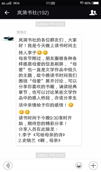 “交流、集體讀書,都是為了讓大家重新找回讀書的感覺(jué),如果大家都讀起書來(lái),我們就達(dá)到基本的目的了。所以在讀書這件事上,從形式到內(nèi)容都不做太多要求。只要讀起書來(lái),參與進(jìn)來(lái)就好,在讀書會(huì)讓大家感到的不是約束,而是心靈的放松。可以這么說(shuō),讓讀書回歸到讀書本身,就是生命成長(zhǎng)和完善的需要?!碧锴呙酚芍缘卣f(shuō)。