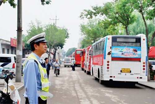 高考接送車有序停放