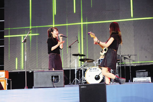 “希望你們能記住我們,我們是瞳樂隊(duì)?!闭l也想不到熟練操作吉他、貝司、架子鼓的是四位美女。這支來自北京,由四個(gè)熱愛搖滾、個(gè)性分明的90后女生組成的樂隊(duì),毫不遜色于大老爺們兒,她們將音樂感染力和舞臺視覺上的沖擊力融為一體,加上主唱獨(dú)特嗓音演唱的躁動或安靜的歌,敲打著觀眾的靈魂。有觀眾戲稱,這就是美女的力量。