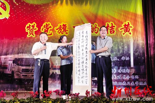 本報(bào)訊 7月3日晚8時(shí),忻府區(qū)文聯(lián)、忻府區(qū)作家協(xié)會(huì)和遺山詩社在忻州市住建局禮堂共同舉辦了一場(chǎng)大型詩歌吟誦演唱會(huì),用詩的語言、歌的韻律抒發(fā)了對(duì)黨的祝福和對(duì)環(huán)衛(wèi)工人的贊美。7月1日是黨的生日,在此之際,他們用詩歌表達(dá)對(duì)黨的熱愛,也表達(dá)對(duì)在黨旗下默默付出的勞動(dòng)者們的敬意。