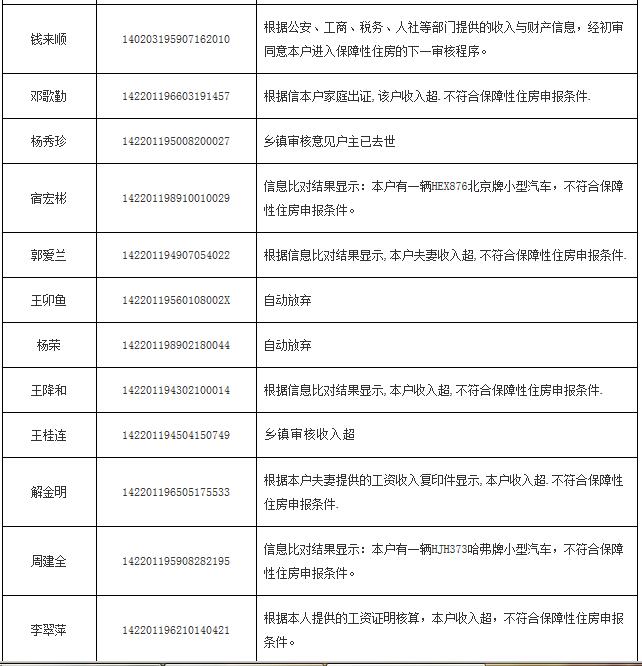2014年申報(bào)公(廉)租房不符合保障條件花名表