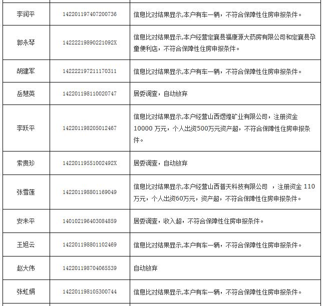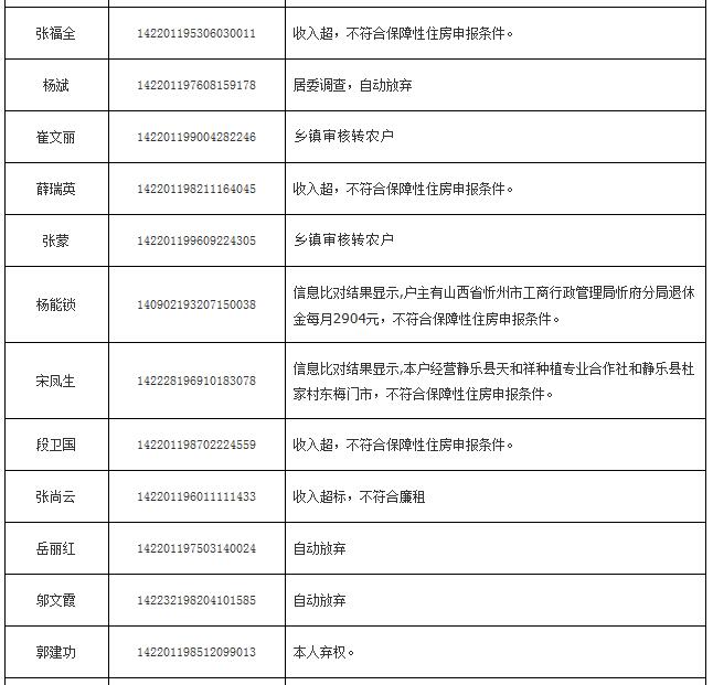 2014年申報(bào)公(廉)租房不符合保障條件花名表