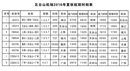 據(jù)了解,五臺山機(jī)場通過充分的市場調(diào)研并結(jié)合五臺山機(jī)場保障能力,克服熱點(diǎn)城市航班時(shí)刻緊缺、航空公司運(yùn)力緊張等困難,先后開通上海浦東——五臺山、天津——五臺山、重慶——五臺山、銀川——五臺山、??凇鹆帧迮_山等航線。同時(shí),積極完善旅客服務(wù)配套設(shè)施:開通機(jī)場——忻州市內(nèi)和機(jī)場——五臺山景區(qū)兩條專線巴士線路,機(jī)場——朔州市內(nèi)巴士線路也即將開通。為了方便市內(nèi)居民航空出行購票,機(jī)場于年初1月8日在市內(nèi)泛華京倫酒店北廳設(shè)立五臺山機(jī)場售票中心,提供24小時(shí)購票服務(wù),并于6月12日在五臺山機(jī)場旅客服務(wù)中心正式落戶,為往來景區(qū)游客提供票務(wù)、保險(xiǎn)、航班信息查詢、機(jī)場巴士等服務(wù)。