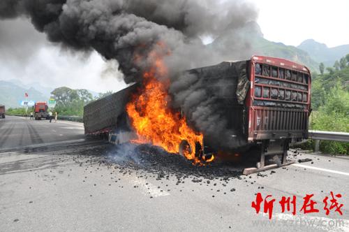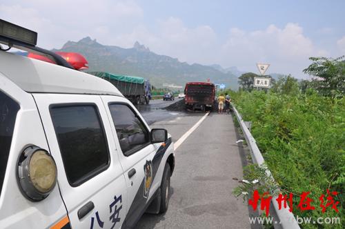 2016年8月6日上午11時20分,高速交警二支隊九大隊值班室接警陳:在五保高速(保五方向)32公里處有半掛車起火,請求出警。接到報警后,值班人員立即上報隊領(lǐng)導(dǎo),值班教導(dǎo)員牛治國立即安排部署,派出事故中隊立即趕赴現(xiàn)場,秩序中隊在耿鎮(zhèn)收費站進(jìn)行分流。
