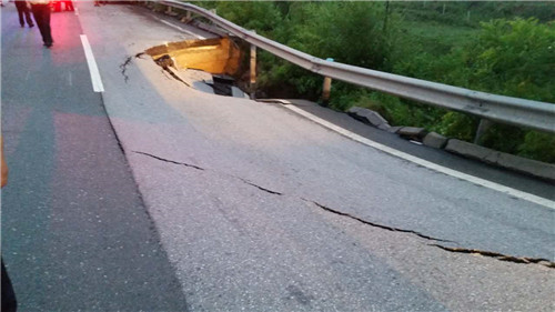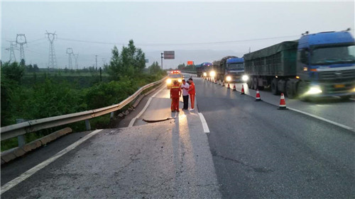 (趙國強)2016年8月14日凌晨4時50分許,高速交警二支隊八大隊值班室接到報警稱,五保高速公路阜平方向K72+100M處(建安站與五臺南站之間)路面塌方,沉陷。接到報警后,副大隊長姬永生帶領在崗民警立即趕赴現(xiàn)場,進行疏導管控。