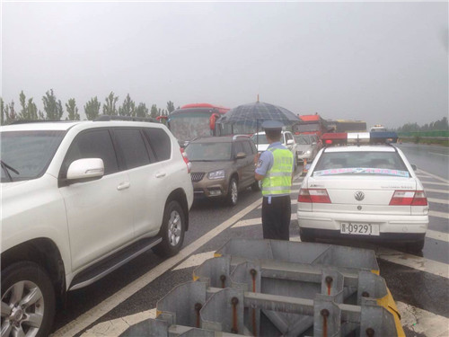 2、民警全部到達塌方路段進行管控疏導并在蔣村收費站進行分流,車輛繞行忻臺線及長原線通行。