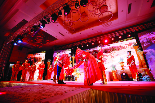戶外草坪婚禮秀現(xiàn)場 婚禮秀來襲,哪一款你最中意 8月7日下午,泛華京倫大酒店在鮮花和氣球的裝扮之下處處涌動著溫馨浪漫的甜蜜氣息。慕名而來參加“浪漫七夕·情動泛華”時尚婚禮秀的賓客絡繹不絕,演出還沒開始,秀場內(nèi)就已座無虛席。時尚婚禮秀對于忻州市民來說還算是件新鮮事兒,賓客中除了戀人情侶,還有不少父母結(jié)伴而來,都帶著疑問看看婚禮到底如何辦出新意。 “秉父母之命,承媒妁之言,今日,新人喜結(jié)連理,諸賓共睹,天地同鑒,于此,新人三拜。一拜,感天地之造化,緣分天賜,德行地載。愿天地賜福,婚姻美滿,天長地久。再拜,婚姻之意義,為延續(xù)生命,推進文明。上以繼父母之血統(tǒng),下以開萬代之文化。三拜,今夕何夕,得此良人。愿此生忠貞不二,矢志不渝?!痹谔咸宵S河和大紅燈籠的映襯之下,一對身著中式婚禮服的新人隆重登場。鳳冠霞帔、紅花禮帽,古樸而莊重,喜氣又脫俗。民歌《想親親》道出了一對新人浪漫甜蜜的愛情故事,悠揚嘹亮的嗩吶聲吹響了幸福的號角,一對甜蜜的新人在親朋好友的簇擁之下邁入洞房。中式婚禮秀《想親親》讓現(xiàn)場的每一位觀眾感同身受,秀容大地的獨特風俗文化在一場婚禮秀中體現(xiàn)得淋漓盡致。 “我想那時你會許我一襲白紗,牽手天涯一起去看山看??答┰庐斂?,繁星點點,想象中和你在一起的每一天都像是做了一個又一個甜甜的夢。”西式婚禮秀《星月童話》一開場,觀眾就被帶入了浪漫唯美的意境,催人淚下的愛情故事娓娓道來,新娘的一襲白紗純潔如雪,新郎的一身西裝筆挺帥氣,宣讀誓詞、交換戒指,彼此深情對視,莊嚴而又神圣。青梅竹馬終成眷屬,這是多少人心目中的夢幻婚禮。 兩種形式的婚禮風格迥異,卻都讓現(xiàn)場觀眾看得如癡如醉。議婚、訂婚、成婚、回門;插喜花、剪窗花、三盤兩對,捏嘴扁食等等,極具特色的婚俗形式一直都是忻州地域文化一道靚麗的風景。如今,隨著中西文化交流的深入,人們早已經(jīng)將傳統(tǒng)的婚禮形式進行了創(chuàng)新,現(xiàn)在的婚禮大都中西結(jié)合,既穿白婚紗也愛紅旗袍。除了隨份子、擺宴席、鬧洞房這些傳統(tǒng)的婚禮習俗,伴手禮、交換戒指、宣讀誓詞這些西式婚禮的元素也倍受親賴。年輕人婚禮觀念與時俱進,個性、時尚、低碳的婚禮已成為不少青年伴侶的首選。