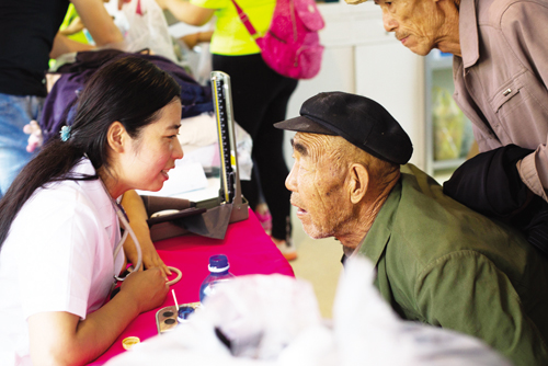 在活動現(xiàn)場嘈雜的人群中,總能一眼就看到身穿白大褂的美女醫(yī)生,為鄉(xiāng)親們忙前忙后、來回穿梭的身影。孤寡老人年紀偏大,身體有這樣那樣的毛病,每次檢查完,張娟都會耐心細致地將檢查情況告訴老人,聲音緩慢、響亮、動聽。