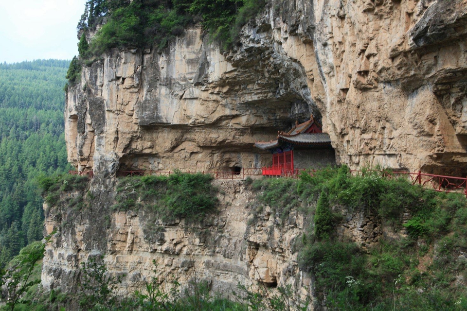 古棧道上有座面南坐北的大殿——毗盧殿,內有毗盧遮那佛塑像。站在大殿轉角處抬眼望去,空曠的山野以及如碧的晴空給人無限惆悵之感。這神秘的古棧道不知何人所建、因何而建,山崖青了又黃,林木榮了又枯,年復一年間,它只默默承受著風霜雨雪。木板