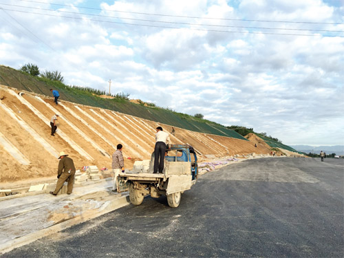 健康街西延道路工程有300多米的高邊斜坡需要做護(hù)坡,護(hù)坡第一層是拱形骨架,第二層以上采用的是土工格柵種草防護(hù),為了加快工程進(jìn)度,拱形骨架的混凝土預(yù)制板全部用吊車運(yùn)輸,并增加作業(yè)人工。張曉峰說,在骨架護(hù)坡施工中,我們監(jiān)理方面主要監(jiān)督的就是三點(diǎn),一是混凝土預(yù)制塊的尺寸,二是質(zhì)量是否滿足圖紙要求,三是在實(shí)際施工中我們監(jiān)督骨架的尺寸、砂漿的強(qiáng)度、模板尺寸,看是否跟設(shè)計(jì)一致。