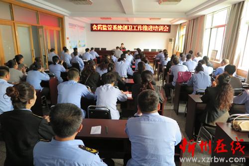 市食藥監(jiān)管系統(tǒng)創(chuàng)衛(wèi)工作推進(jìn)培訓(xùn)會(huì)現(xiàn)場(chǎng)。