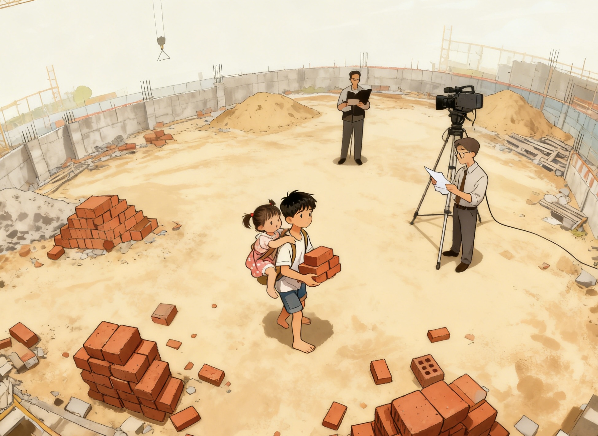 要戳破這場“愛心騙局”,首先得認(rèn)清擺拍式賣慘的真實(shí)嘴臉。這些“苦情戲”的典型癥結(jié),在于缺少“時間、地點(diǎn)、人物”核心三要素,關(guān)鍵是劇情嚴(yán)重違背邏輯常識。就像視頻中赤足干活的男孩,稍有常識者都清楚,這完全違反工地基本安全規(guī)范。這些“演員”對面往往架著專業(yè)的拍攝設(shè)備,力求捕捉到每一個“慘”的瞬間,生怕錯過任何一個催淚點(diǎn)。
