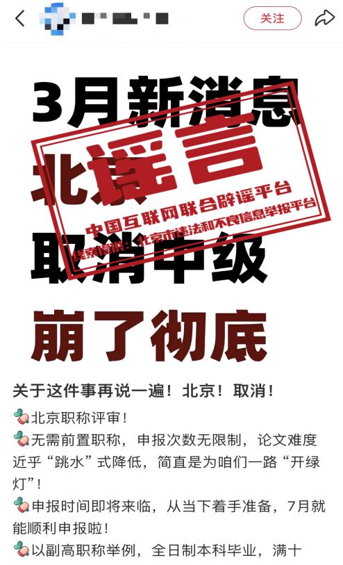 詳情:近期,2025年度職稱評審工作啟動(dòng)后,網(wǎng)上流傳“北京取消中級職稱”的說法。經(jīng)核實(shí),此言論不實(shí),中級職稱并未取消。據(jù)北京市人社局介紹,申報(bào)人可以對照初級、中級、高級職稱不同層級的要求,根據(jù)自身情況申請職稱評審。不同系列的職稱申報(bào)具體要求不同,以工程技術(shù)系列為例,本科畢業(yè)需要先取得中級職稱,獲評中級職稱后從事本專業(yè)技術(shù)工作滿5年,才能申報(bào)高級職稱。(來源:“北京網(wǎng)絡(luò)舉報(bào)”微信公眾號)