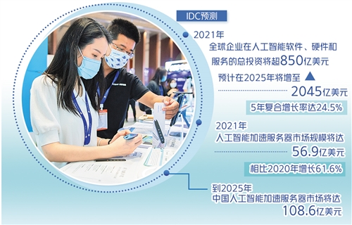 觀眾在2021世界計(jì)算大會(huì)現(xiàn)場(chǎng)試用AI翻譯設(shè)備。 新華社記者 陳思汗攝 在日前舉行的2021人工智能計(jì)算大會(huì)上,國(guó)際數(shù)據(jù)公司IDC和浪潮信息聯(lián)合發(fā)布的《2021—2022中國(guó)人工智能計(jì)算力發(fā)展評(píng)估報(bào)告》顯示,相比2020年,人工智能在金融、制造、能源、公共事業(yè)和交通等行業(yè)體現(xiàn)的推動(dòng)作用尤為顯著。同時(shí),以智能計(jì)算中心為代表的算力基礎(chǔ)設(shè)施,通過(guò)提供公共的算力、數(shù)據(jù)及算法服務(wù),讓算力服務(wù)易用,解決算力服務(wù)的供給問(wèn)題。 “4年來(lái),我們發(fā)現(xiàn)人工智能算力越來(lái)越受到重視,這方面的應(yīng)用越來(lái)越成熟,無(wú)論是芯片的多元化還是人工智能服務(wù)器的計(jì)算能力、計(jì)算容量等都比4年前有了很大的提高?!盜DC企業(yè)研究助理副總裁周震剛接受經(jīng)濟(jì)日?qǐng)?bào)記者采訪時(shí)說(shuō)。 周震剛表示,相比去年,人工智能在各個(gè)行業(yè)的滲透度都在提升,尤其是在互聯(lián)網(wǎng)行業(yè)和金融行業(yè)。此外,制造、交通和能源行業(yè)在人工智能的應(yīng)用也更加深入。 據(jù)了解,全球已有60多個(gè)國(guó)家和地區(qū)出臺(tái)人工智能政策,發(fā)布國(guó)家級(jí)人工智能戰(zhàn)略。IDC預(yù)測(cè),2021年全球企業(yè)在人工智能軟件、硬件和服務(wù)的總投資將超850億美元,預(yù)計(jì)在2025年將增至2045億美元,5年復(fù)合增長(zhǎng)率達(dá)24.5%。 不過(guò),中國(guó)工程院院士、浪潮首席科學(xué)家王恩東認(rèn)為,人工智能也帶來(lái)了指數(shù)級(jí)增長(zhǎng)的算力需求,計(jì)算產(chǎn)業(yè)正面臨著多元化、巨量化、生態(tài)離散化交織的趨勢(shì)與挑戰(zhàn)。一方面,多樣化的智能場(chǎng)景需要多元化的算力,算力已經(jīng)成為人工智能繼續(xù)發(fā)展的重中之重;另一方面,從芯片到算力的轉(zhuǎn)化依然存在巨大鴻溝,多元算力價(jià)值并未得到充分釋放。如何快速完成多元芯片到計(jì)算系統(tǒng)的創(chuàng)新,已經(jīng)成為推動(dòng)人工智能產(chǎn)業(yè)發(fā)展的關(guān)鍵環(huán)節(jié)。 人工智能產(chǎn)業(yè)化對(duì)算力的需求正在激增,浪潮信息副總裁劉軍表示,算法模型發(fā)展也將更加復(fù)雜,巨量模型將是規(guī)?;瘎?chuàng)新的基礎(chǔ),“源1.0”等巨量模型的出現(xiàn),讓構(gòu)建大模型、提升人工智能處理性能成為發(fā)展趨勢(shì)。 目前,全球知名的人工智能公司在巨量模型上都投入巨大,谷歌、微軟、英偉達(dá)、浪潮、智源人工智能研究院、百度、阿里等公司相繼推出了各自的巨量模型?!熬蘖炕囊粋€(gè)核心特征就是模型參數(shù)多、訓(xùn)練數(shù)據(jù)量大?!眲④娨岳顺比斯ぶ悄苎芯吭洪_(kāi)發(fā)的中文人工智能巨量模型“源1.0”為例介紹說(shuō),其數(shù)量高達(dá)2457億,訓(xùn)練數(shù)據(jù)集規(guī)模達(dá)到5000GB?!拔覀儗?duì)算力的追求沒(méi)有極限?!眲④娬f(shuō)。 人工智能芯片正呈現(xiàn)多元化發(fā)展趨勢(shì),芯片的多元化為人工智能產(chǎn)業(yè)化的加速提供了重要的產(chǎn)業(yè)基礎(chǔ)和更加豐富的選擇。但是,芯片從造出來(lái)到大規(guī)模用起來(lái),還隔著一個(gè)巨大的產(chǎn)業(yè)鴻溝。以一臺(tái)人工智能服務(wù)器研制為例,整個(gè)系統(tǒng)需要經(jīng)過(guò)30多個(gè)開(kāi)發(fā)流程,使用150多種加工制造工藝,對(duì)280多個(gè)關(guān)鍵過(guò)程控制點(diǎn)的質(zhì)量進(jìn)行嚴(yán)格把控,還要實(shí)現(xiàn)與算法框架和人工智能應(yīng)用的優(yōu)化與適配等問(wèn)題。 “要想釋放多元算力價(jià)值、促進(jìn)人工智能創(chuàng)新,一是要重視智算系統(tǒng)的創(chuàng)新,加大人工智能新型基礎(chǔ)設(shè)施建設(shè),把從技術(shù)到應(yīng)用的鏈條設(shè)計(jì)好,從體系結(jié)構(gòu)、芯片設(shè)計(jì)、系統(tǒng)設(shè)計(jì)、系統(tǒng)軟件、開(kāi)發(fā)環(huán)境等各個(gè)領(lǐng)域形成既分工明確又協(xié)同創(chuàng)新的局面;二是要加快推動(dòng)開(kāi)放標(biāo)準(zhǔn)建設(shè),通過(guò)統(tǒng)一、規(guī)范的標(biāo)準(zhǔn),將多元化算力轉(zhuǎn)變?yōu)榭烧{(diào)度的資源,讓算力好用、易用?!蓖醵鳀|說(shuō)。 中國(guó)人工智能基礎(chǔ)設(shè)施市場(chǎng)規(guī)模保持高速增長(zhǎng),中國(guó)服務(wù)器廠商已成為全球服務(wù)器市場(chǎng)的中堅(jiān)力量。IDC預(yù)計(jì),2021年人工智能加速服務(wù)器市場(chǎng)規(guī)模將達(dá)56.9億美元,相比2020年增長(zhǎng)61.6%,到2025年,中國(guó)人工智能加速服務(wù)器市場(chǎng)將達(dá)108.6億美元。 我國(guó)明確提出在全國(guó)布局算力網(wǎng)絡(luò)國(guó)家樞紐節(jié)點(diǎn),同時(shí)積極推進(jìn)智能計(jì)算中心建設(shè),發(fā)力構(gòu)建普適普惠、安全可靠的現(xiàn)代化基礎(chǔ)設(shè)施體系和生態(tài)。智能計(jì)算中心已被越來(lái)越多的地方政府視為實(shí)現(xiàn)支撐和引領(lǐng)數(shù)字經(jīng)濟(jì)、智能產(chǎn)業(yè)、智慧城市、智慧社會(huì)發(fā)展的關(guān)鍵性信息基礎(chǔ)設(shè)施,為算力、數(shù)據(jù)、生態(tài)和產(chǎn)業(yè)發(fā)展提供