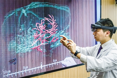 圖為科研人員展示通過混合現(xiàn)實(shí)技術(shù),微米級呈現(xiàn)腦機(jī)接口裝置與大鼠大腦主要血管和腦組織的空間位置關(guān)系。新華社記者 肖藝九 攝