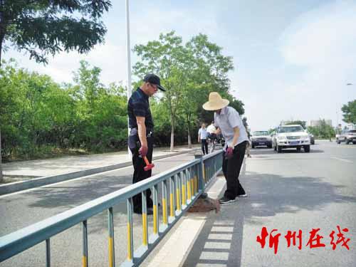 交警聞風(fēng)而動 建設(shè)南路破損護(hù)欄底座全部更換